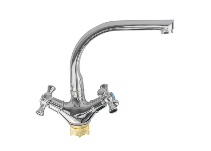Змішувач для кухні Wezer TLD4-827 обладнаний високим і довгим виливом. Така конструкція виробу дозволяє його монтувати на мийки великих розмірів, маленької глибини. Прилад дозволяє встановлювати під ним високі і широкі каструлі, мити габаритні кухонне приладдя і продукти. При цьому виливши змішувача для кухні TLD4-827 обертається навколо своєї осі, тому він придатний для мийок з декількома раковинами. А гайка міцно утримує прилад на тонких поверхнях.