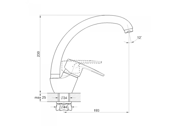 Змішувач для кухні Wezer YUB4-181 кріпиться на поверхню за допомогою гайки. Даний кріпильний механізм рівномірно затискає корпус по колу. Це робить його зчеплення з поверхнею максимально міцним. Завдяки ему кран не прокручується і не хитається, дуже низька ймовірність поломки самої гайки.