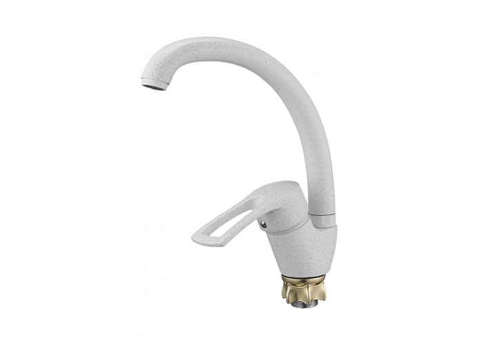 Змішувач для кухні Wezer YUB4-181-WHITE має спеціальне покриття з фарби, що імітує забарвлення каменю. Завдяки цьому він не виглядає безбарвним плямою, а виглядає справжнім витвором.