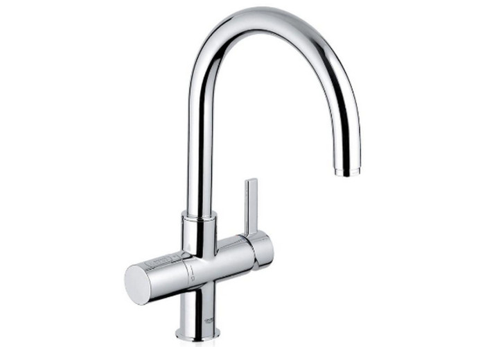 Змішувач для кухні Grohe Blue 33251000 виготовлений з латуні. Завдяки хромованому покриттю має оригінальний зовнішній вигляд. Комбінований змішувач на 2 води виконує дві основні функції: подача змішаної водопровідної води (для господарських потреб) та подача фільтрованної води (для пиття чи приготування їжі). Виконаний в сучасному дизайні та підійде для будь-якої вишуканої кухні.