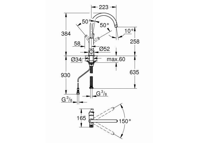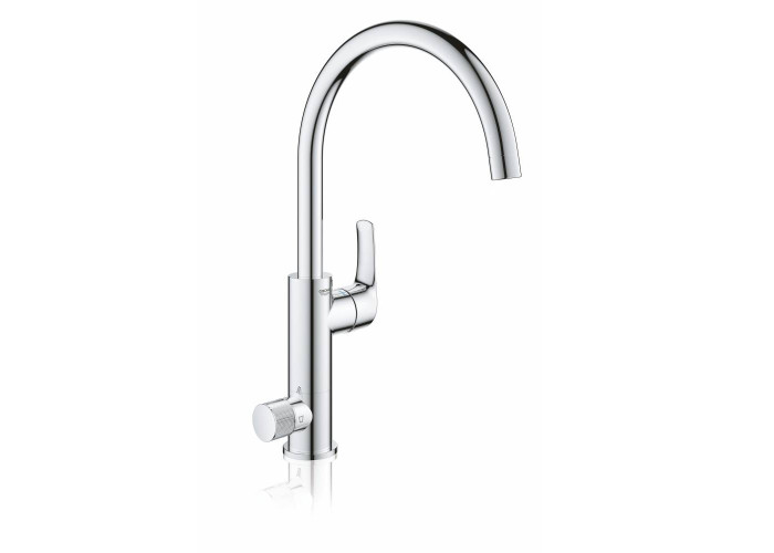 GROHE QuickFix - зручний монтаж. GROHE SilkMove - плавність ходу важеля. GROHE StarLight - хромоване покриття. GROHE ComfortHeight - високий вилив. GROHE SmoothTurn® - плавний поворот виливу. GROHE Two water - технологія дозволяє використовувати змішувач для подачі як очищеної фільтрованої води, так і технічної води з водопроводу.