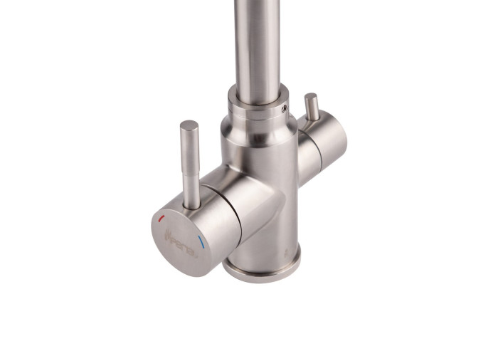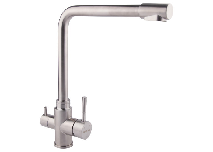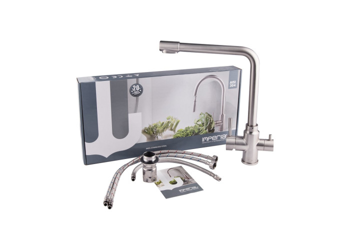 Змішувач з фільтром для кухні Imperial 31-013-12 виготовлений з нержавіючої сталі. Завдяки нікельованій брашованій поверхні має оригінальний зовнішній вигляд. Виконаний в сучасному стриманому стилі, в якому передбачено 2 виливи: вода для побутових витрат, а також з фільтром для питної води. Такий змішувач має додатковий важіль, що дозволяє перемикати режим на подачу питної води. Він не тільки зручний та практичний, але й стане ідеальною знахідкою на кухні.