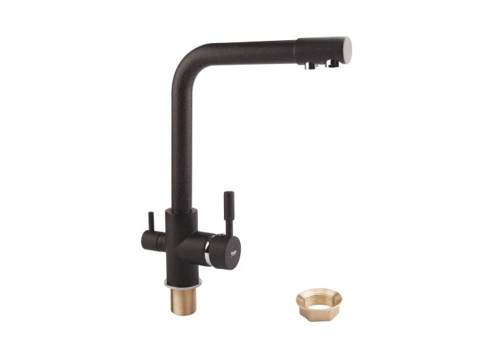 Змішувач для кухні та питної води Potato P4098-6 виготовлений з високоякісної харчової латуні, яка стійка до впливу корозії, ударів і тріщин. Завдяки чорній матовій поверхні має оригінальний зовнішній вигляд. Виконаний в сучасному стилі, з двома виливами: один для питної води, інший - для водопровідної, при цьому потоки води не змішуються. Такий змішувач не тільки зручний у використанні, але й стане справжньою родзинкою на кухні.