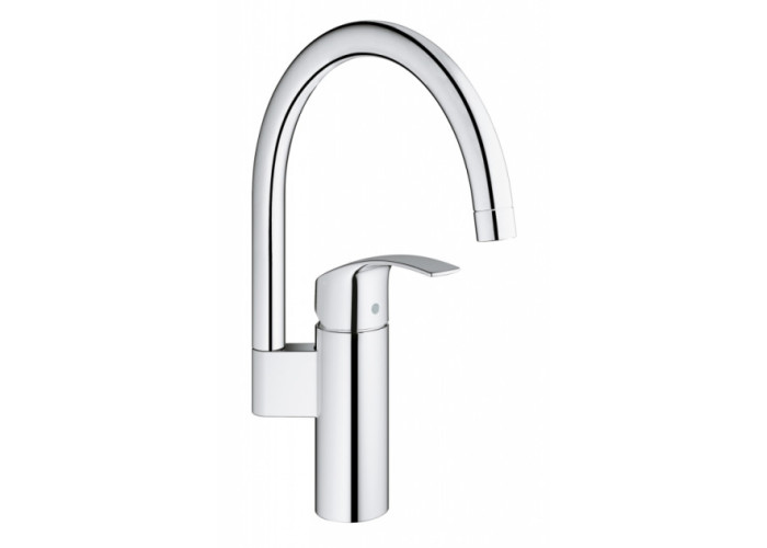 Змішувач для кухні Grohe Eurosmart (33202002) з поворотним виливом, монтаж на один отвір. Високий, С-подібний, що обертається навколо своєї осі вилив дозволить набрати як високу каструлю так і вазу або пляшку без особливих складнощів. Аератор, керамічний картридж 35 мм.