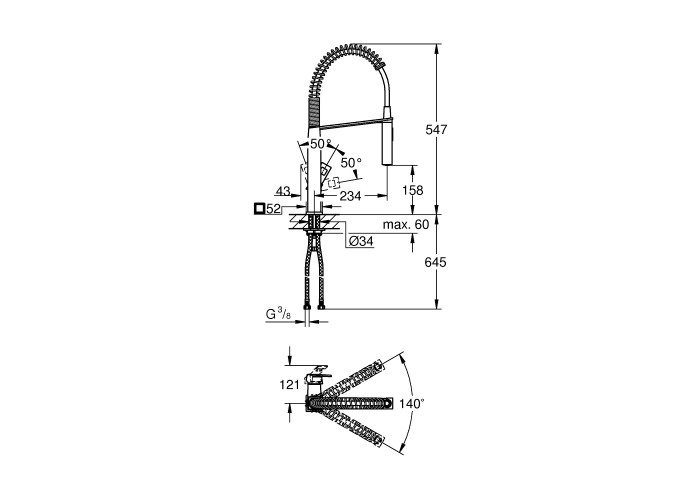 GROHE SpeedClean - технологія виготовлення сопла з багатокомпонентного силікону для уникнення виникнення накипу. GROHE SilkMove - плавність ходу важеля. GROHE StarLight - хромоване покриття. GROHE ComfortHeight - високий вилив. GROHE SmoothTurn - плавний поворот виливу. GROHE Professional-Spray - душ з поворотним діапазоном 360°, зі зливовим і розпилювальним струменями.