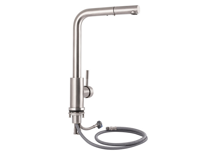 Змішувач для кухні з висувним виливом Lidz (NKS) 12 32 015FL-13 виготовлений з нержавіючої сталі. Завдяки нікельованій брашованій поверхні має оригінальний зовнішній вигляд. Він виконаний в сучасному стриманому стилі. Такий змішувач не тільки зручний і практичний, а й ідеально доповнить інтер‘єр кухні.