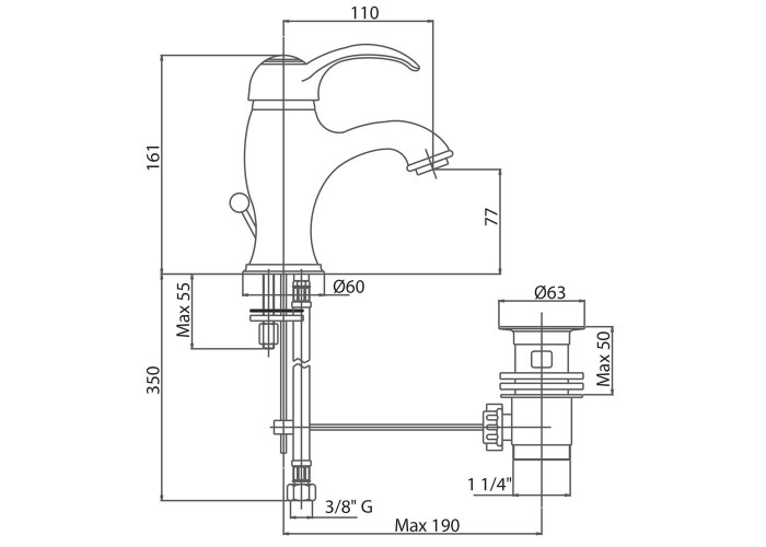 Змішувач для раковини Bianchi Class LVBCLS2002IACRM виготовлений з високоякісної латуні, яка стійка до впливу корозії, ударів і тріщин. Хромована глянцева поверхня надає змішувачу привабливості. Змішувач має одноважільне управління, за допомогою якого можна відрегулювати температуру і напір холодної та гарячої води. Підключення води відбувається через гнучкі шланги з діаметром підмикання 1/2". Виконаний в ретро-стилі та ідеально доповнить інтер‘єр санвузла з такою ж тематикою.