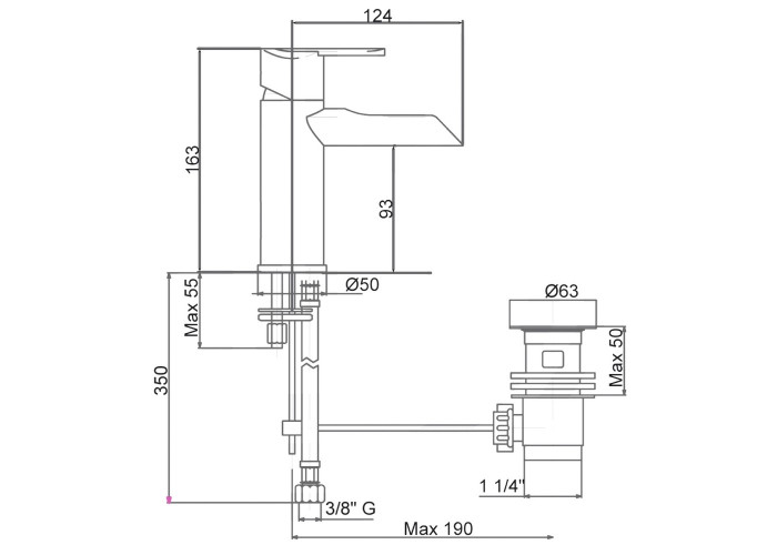 Змішувач, гнучкий підвід, донний клапан, кріпильні деталі.