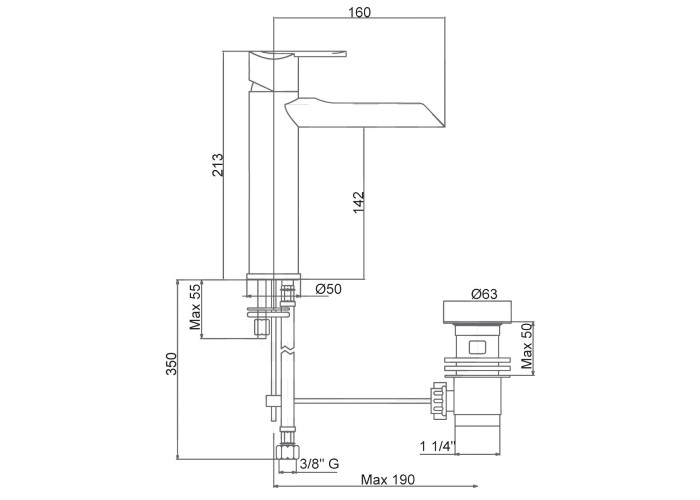 Змішувач, гнучкий підвід, донний клапан, кріпильні деталі.