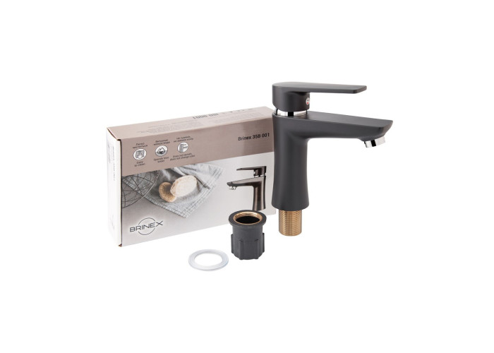 Змішувач для раковини Brinex 35B 001 виготовлений з термопластичного пластику, який при нагріванні не викликає опіків. Робочий рівень температури використання від +30 до +95 °C. Чорна матова поверхня змішувача надає йому оригінальний зовнішній вигляд. Виконаний в сучасному стилі зі зручним важелем для регулювання натиску і температури води. Такий змішувач стане незвичайним рішенням в інтер‘єрі санвузла.