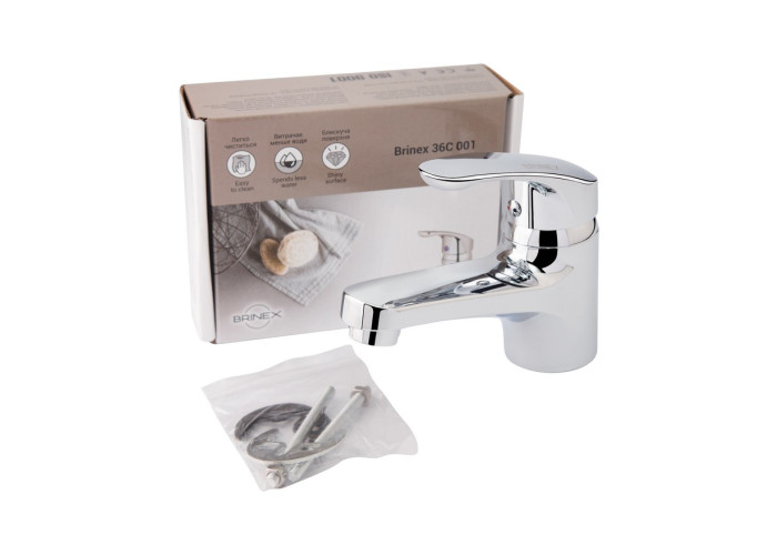 Змішувач для раковини Brinex 36C 001 виготовлений з термопластичного пластику, який при нагріванні не викликає опіків. Робочий рівень температури використання від +30 до +95 °C. Глянцева хромована поверхня змішувача надає йому оригінальний зовнішній вигляд. Виконаний в сучасному стилі зі зручним важелем для регулювання натиску і температури води.