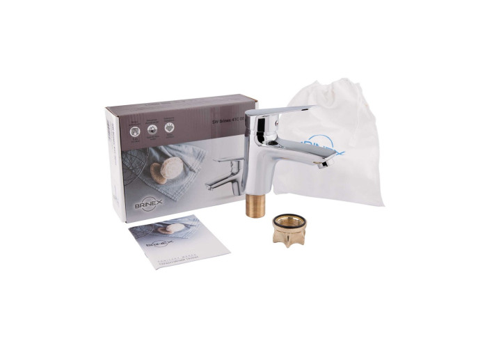Змішувач для раковини Brinex 41C 001F виготовлений із металу. Глянцева хромована поверхня змішувача надає йому оригінальний зовнішній вигляд. Виконаний в сучасному стилі зі зручним важелем для регулювання натиску і температури води.