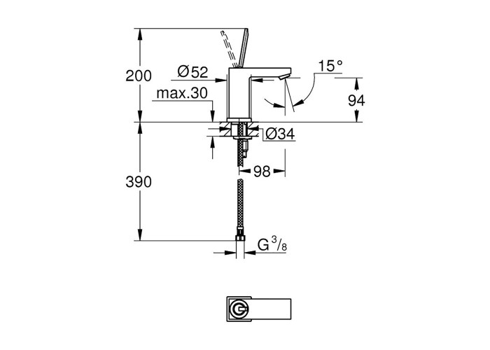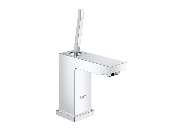 Змішувач для раковини Grohe Eurocube Joy S-Size 23656000 виготовлено з високоякісної харчової латуні, що стійка до впливу корозії, ударів і тріщин. Глянцева хромована поверхня надає йому оригінальний зовнішній вигляд. Змішувач має управління джойстиком, за допомогою якого можна відрегулювати температуру і напір холодної та гарячої води. Підключення води відбувається через гнучкі шланги з діаметром підключення 3/8". Виконано в сучасному стилі.