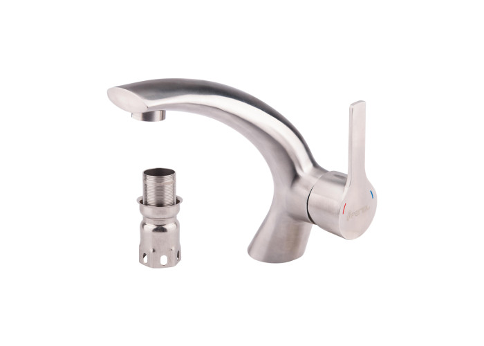 Змішувач для раковини Imperial 34-001-00 виготовлена з нержавіючої сталі, яка стійка до впливу корозії, ударів і тріщин. Нікельована брашована поверхня надає змішувачу не тільки довговічність, але й оригінальний зовнішній вигляд. Інтенсивність водного потоку та температура регулюються за допомогою переміщення важеля. Підключення води відбувається через гнучкі шланги з діаметром підмикання 1/2", які є в комплекті.