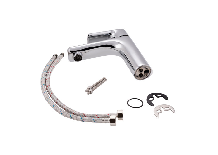 Змішувач для раковини Lidz (CRM) 23 48 001 виготовлений з латуні з хромованим покриттям. Завдяки цьому він довговічний і менш схильний до утворення корозії. Виріб кріпиться врізним способом в стільницю або отвір в раковині за допомогою гнучкого підведення і кріплень, які комплектуються разом з ним в одне вантажне місце. Подача води і її температура регулюються зручним важелем.