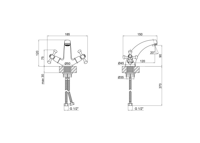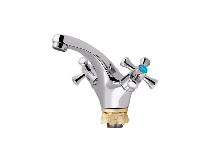 Змішувач для раковини Lidz (CRM) 75 21 161F виготовлений з латуні. Глянцева хромована поверхня надає змішувачу не тільки довговічність, а й привабливий зовнішній вигляд. Він монтується в отвір для змішувача на пристінному бортику умивальника або на стільниці. Напір і температура води регулюються поворотом зручних ручок. Підключення води відбувається через гнучкі шланги, які входять в комплект поставки. Змішувач виконано в сучасному стилі, він зручний у використанні.