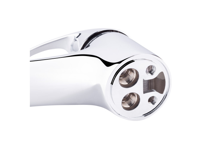 Змішувач для раковини Lidz (CRM) Premiera 41 001 виготовлений з латуні. Глянцева хромована поверхня надає змішувачу не тільки довговічність, а й привабливий зовнішній вигляд. Він монтується в отвір для змішувача на пристінному бортику умивальника або на стільниці. Напір і температура води регулюються поворотом важеля. Підключення води відбувається через гнучкі шланги, які входять в комплект поставки. Змішувач виконано в сучасному стилі, він зручний у використанні.