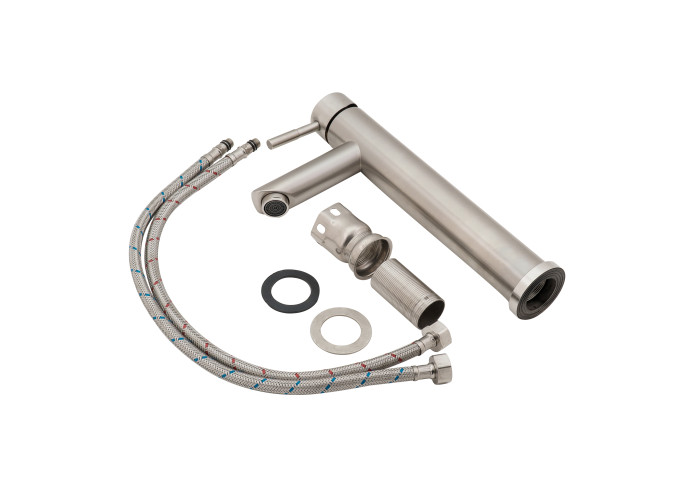 Змішувач для раковини Lidz (NKS) 12 32 001F-1 виготовлена з нержавіючої сталі, яка стійка до впливу корозії, ударів і тріщин. Нікельована брашована поверхня надає змішувачу не тільки довговічність, але й оригінальний зовнішній вигляд. Інтенсивність водного потоку та температура регулюються за допомогою переміщення важеля. Підключення води відбувається через гнучкі шланги з діаметром підмикання 1/2", які є в комплекті.