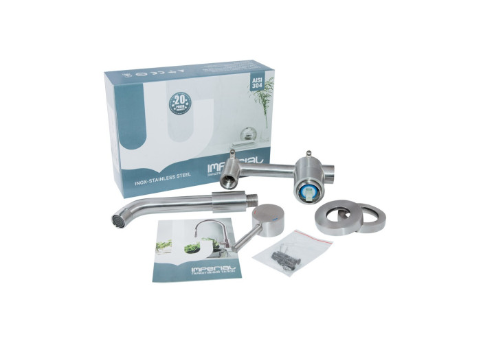 Змішувач для раковини прихованого монтажу Imperial 31-001B-10 виготовлений з високоякісної нержавіючої сталі, яка не схильна до корозії, стійка до ударів і появи тріщин. Брашована поверхня надає змішувачу оригінальний зовнішній вигляд. Завдяки прихованому монтажу змішувач поєднує в собі функціональність, практичність і естетику. Він компактний, всі комунікації заховані в стіні, а це значить що такий пристрій вирішить проблему маленького простору у ванній.