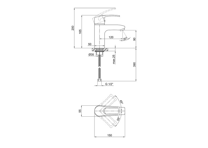 Змішувач для раковини Qtap Hansberg CRM 001F виготовлений з високоякісної харчової латуні, яка стійка до впливу корозії, ударів і тріщин. Глянсове хромоване покриття не тільки підвищує довговічність змішувача, а й надає йому оригінальний зовнішній вигляд. Інтенсивність водного потоку та температура регулюються за допомогою переміщення важеля. Підключення води відбувається через гнучкі шланги з діаметром підмикання 1/2". Виконаний в сучасному стилі, який ідеально доповнить інтер‘єр санвузла.