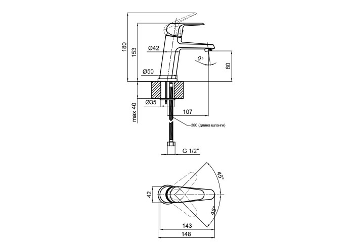 Змішувач, гнучкий підвід, кріпильні деталі.
