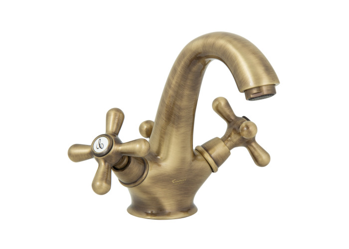 Представлений тут настільний змішувач для умивальника з донним клапаном Deco-Classic BR12013 від Emmevi, виготовлений з високоякісної латуні з покриттям кольору бронзи, має стаціонарний вилив з виносом 14.5 см. Модель встановлюється на один отвір використовуючи гнучкі шланги для підведення води М10*1/2″.