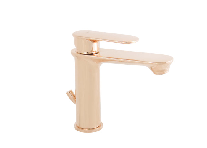 Представлений тут настільний змішувач для умивальника Kiry ORS88003 від Emmevi, виготовлений з високоякісної латуні з керамічним картриджем і покриттям кольору рожеве золото, має стаціонарний вилив з виносом 14.5 см. Модель встановлюється на один отвір використовуючи гнучкі шланги для підведення води М10*1/2″.