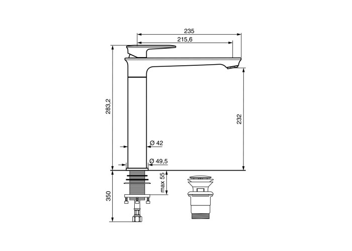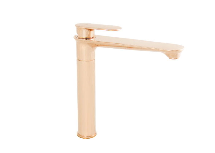 Представлений тут настільний змішувач для умивальника Kiry ORS88003BIG від Emmevi, виготовлений з високоякісної латуні з керамічним картриджем і покриттям кольору рожеве золото, має стаціонарний вилив з виносом 23.5 см. Модель встановлюється на один отвір, комплектується донним клапаном.