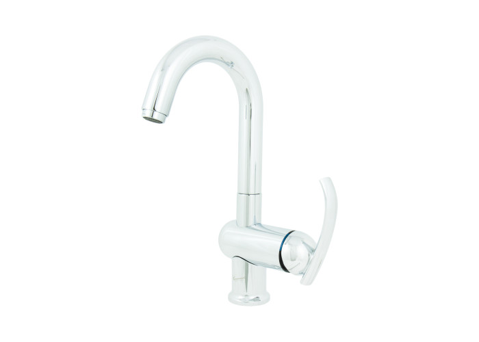 Представлений тут одноважільний настільний змішувач для умивальника з донним клапаном CR72073 серії Ramses від Emmevi, виготовлений із високоякісної латуні з покриттям хромового кольору, має високий поворотний вилив із виносом 14 см. Модель встановлюється на один отвір використовуючи гнучкі шланги для підведення води М10*1/2″.