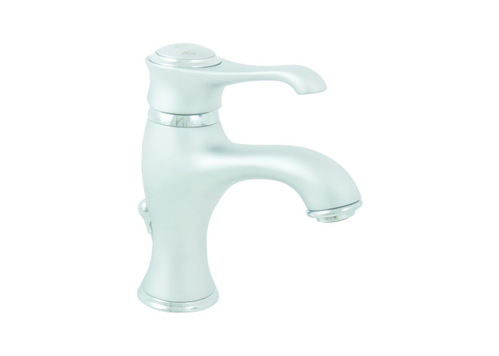 Представлений тут одноважільний настільний змішувач для умивальника з донним клапаном Tiffany SC6003 від Emmevi виготовлений із високоякісної латуні з керамічним картриджем і покриттям кольору матового хрому, має стаціонарний вилив з виносом 12 см. Модель встановлюється на один отвір використовуючи гнучкі шланги для підведення води М10*1/2″.