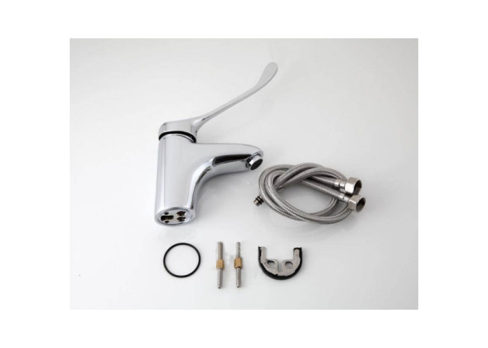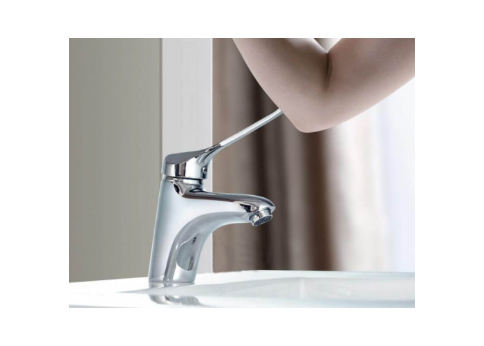 Змішувач для умивальника Frap F1054 дозволяє включати і вимикати воду за допомогою ліктя. Завдяки цьому контакт рук з можливими бактеріями стає мінімальним. Такий виріб різко підвищує гігієнічність процедур. Невеликий кран можна встановлювати в медпунктах шкіл, дитячих садів, підприємств. Особливо якщо необхідно проводити маніпуляції.