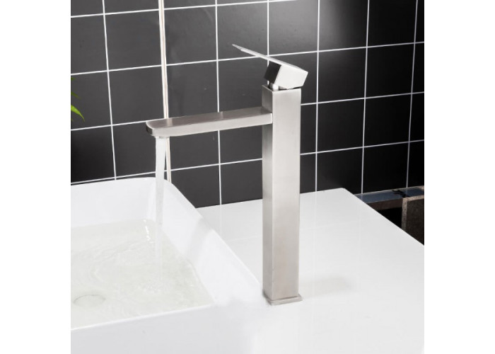 Змішувач для умивальника Frap F10802-2 нержавіюча сталь є високим, тому призначений для чаш на поверхні стільниці. При цьому виріб має компактні розміри і сучасний дизайн. Його важіль управління і керамічний картридж дозволяють виробляти всі налаштування однією рукою. Такий механізм дає можливість "запам'ятовувати" температуру води. Для цього достатньо закрити прилад в виставленому положенні.