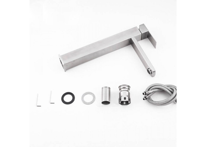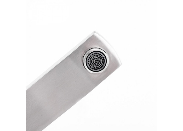 Корпус змішувача для умивальника Frap F10802-2 з нержавіючої сталі, тому прилад має підвищену стійкість до іржавіння. А нахил аератора в 12 градусів направляє струмінь точно в чашу.