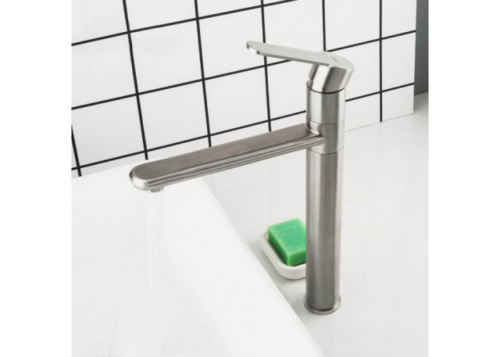 Змішувач для умивальника Frap F10899 нержавіюча сталь призначений для чаш, які монтуються безпосередньо на поверхню стільниці, а не утапліваются в неї. А корпус зі спеціального сплаву заліза з додаванням хрому не боїться попадання бризок і іржавіння під їх дією. Так само він має привабливий зовнішній вигляд і простий у догляді.