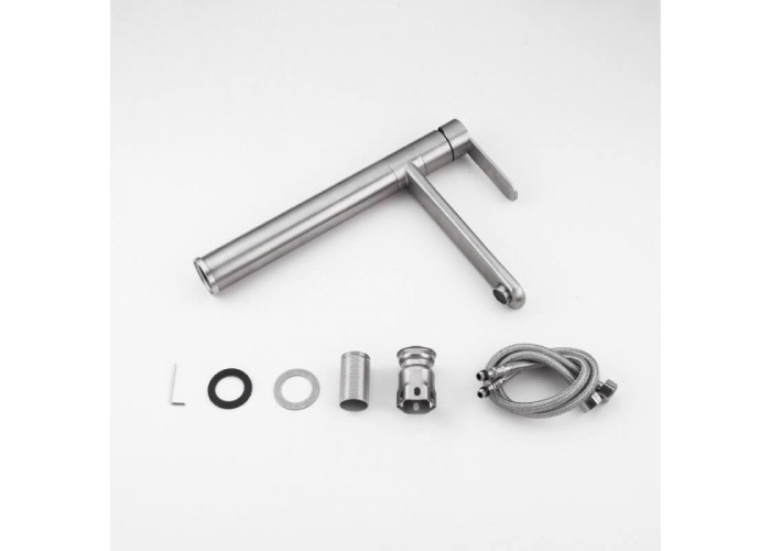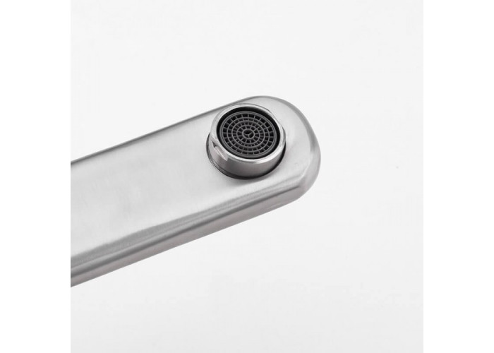 Змішувач для умивальника з нержавіючої сталі Frap F10899 кріпиться за допомогою гайки з такого ж металу. Вона міцно піджимає виріб до поверхні, перешкоджаючи його прокручування і хитання.