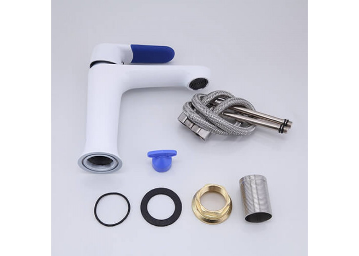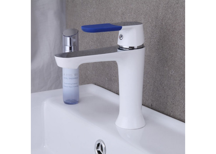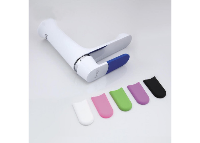 Змішувач для умивальника Frap H34 F1034 має спеціальні декоративні накладки, які можна змінювати в залежності від свого бажання. Це привносить в інтер'єр яскраві кольорові нотки. Так само на ручці і виливу є хромовані ділянки, що необхідно враховувати при його покупці.