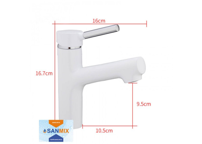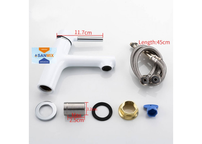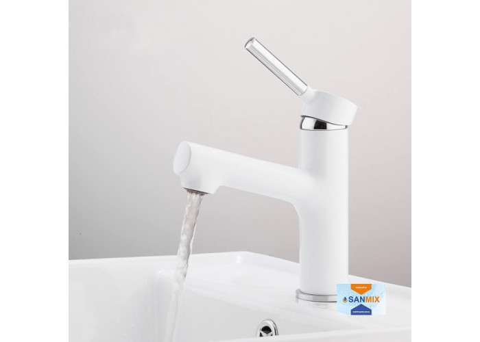 Змішувач для умивальника Frap H44-8 F1044-8 латунний пофарбований у білий колір, тому не буде надмірно виділятися в інтер'єрі. Його виливши у вигляді трубки відрізняється оригінальністю і зручний у використанні. Під ним комфортно мити руки і вмиватися навіть при слабкій струмені. При цьому прилад не боїться дії вологи, оскільки виготовлений з мідного сплаву. Він витримує високі температури і різкі її перепади.