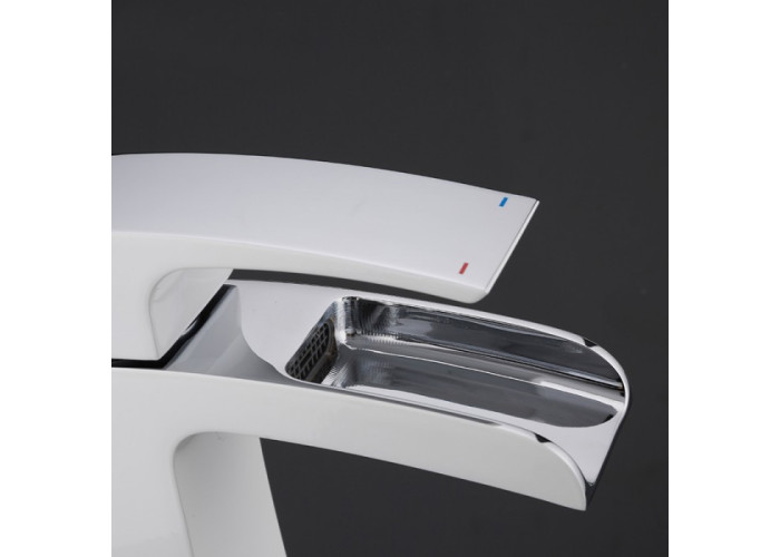 Пристрій оснащений керамічним картриджем 35 мм, який відрізняється безшумною роботою і довгим терміном служби. Конструкція виливу "водоспад" дозволяє насолодитися естетичною красою і значно поліпшити інтер'єр ванної кімнати або вбиральні. Ретельно продумана конструкція не допускає утворення бризок, забезпечуючи при цьому напір достатньої потужності.