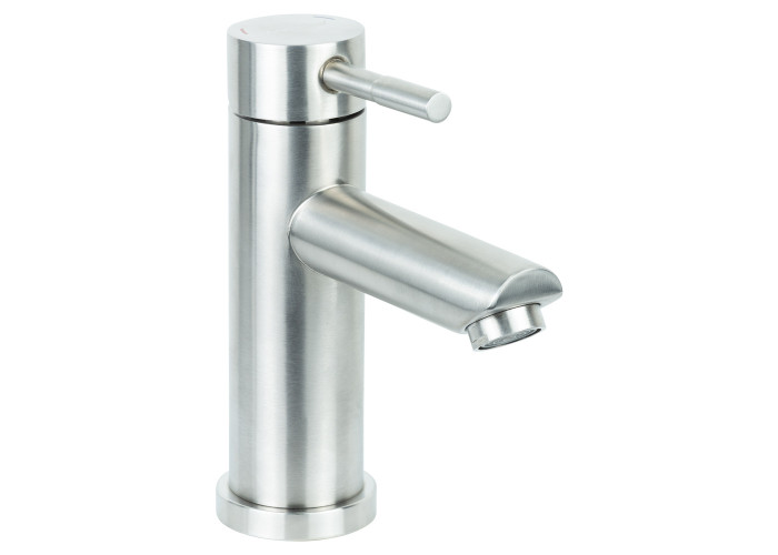Змішувач KT Ø35 для раковини литий на гайці SS AQUATICA (KT-1A170P). Мінімальний тиск в системі водопостачання: 0.5 бар. Максимальний тиск в системі водопостачання: 10 бар. Водневий показник води (pH): 6.5-8.5. Загальна мінералізація води: не більше 1500 г/м³. Тільки для чистої води без домішок, що містять абразиви (пісок, глину, вапно тощо). KT-1A170P - це змішувач для раковини, виготовлений з нержавіючої сталі, не підвладний корозії. Тип - змішувач, з монолітним виливом. Шляхетний дизайн з ручкою робить цей змішувач прекрасної деталлю будь-якого інтер'єру і форми умивальника. Змішувач для раковини даної моделі характеризують такі переваги: зручне використання завдяки компактним розмірам; стриманий зовнішній вигляд; міцний надійний корпус; плавне регулювання бажаної температури і напору струменя; довговічний керамічний картридж; простота в догляді (протирати тканиною або м'якою губкою). Монтують змішувач для умивальника KT-1A170P на горизонтальну поверхню за допомогою гайки (втулки). У комплекті поставляється гнучкий підвід (2 шт.). Гарантія на дану модель змішувача крана становить 36 місяців.
