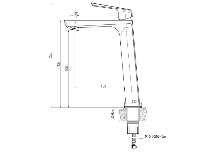 Змішувач для раковини TOPAZ LEXI TL 21203-H57-BL високий