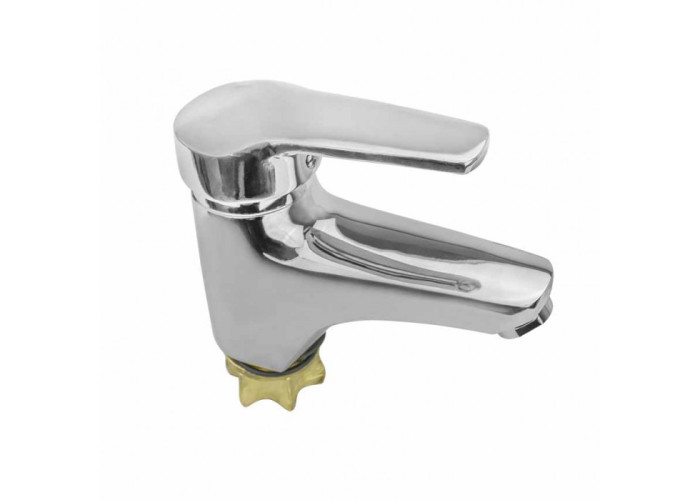 Знизу на ручці змішувача для умивальника Wezer BIT1-182 є спеціальна опуклість, що перешкоджає зісковзуванню пальців при відкритті приладу. Кріплення за допомогою гайки міцно фіксує його на тонких поверхнях.