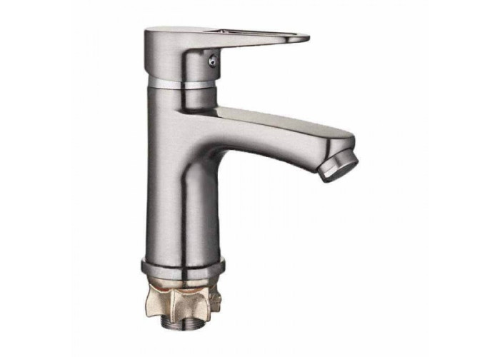Змішувач для умивальника Wezer PUD1-045-SATIN виготовляється з нержавіючої сталі. Завдяки цьому пристрій відрізняється підвищеним терміном служби і простотою в догляді. Зверху поверхню виробу має спеціальну обробку, що надає їй незвичайний колір. При цьому вона не боїться дії води і вогкості, оскільки покриття немає, воно не облазить з часом.