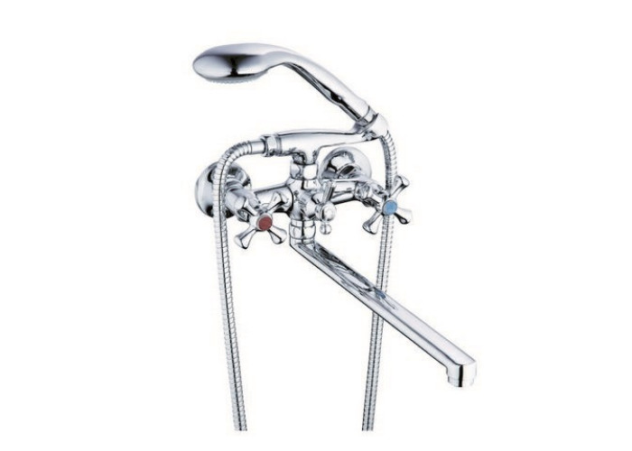 Буксовий змішувач для ванної WEZER з довгим плоским гусаком. Кульовий перемикач на душ. Кріплення настінне. Матеріал – силумін, покриття хром. Виробник – Китай. Клас товару – економ.
