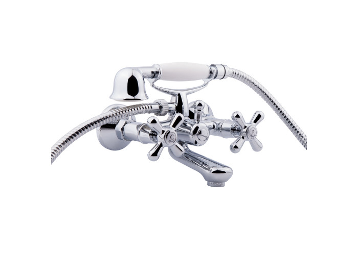 Змішувач для ванни Bianchi Old Fashion VSCOLF1024OLF00CRM виготовлений з міцної якісної латуні, стійкої до корозії. Завдяки рівномірному хромованому покриттю, яке забезпечує захист від механічних пошкоджень і полегшує догляд за виробом, експлуатаційний період значно збільшується. Змішувач обладнаний душовим гарнітуром зі зручною лійкою та вбудованим стильним тримачем. Ручка лійки білого кольору.