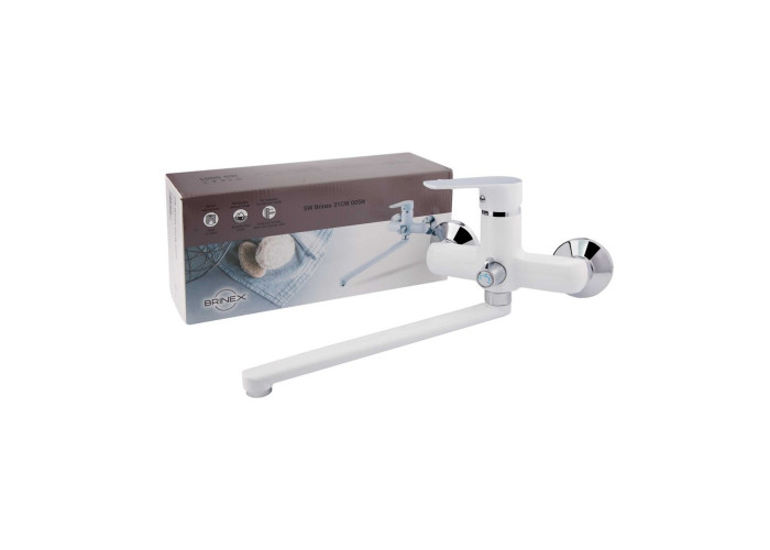 Змішувач для ванни Brinex 31CW 005N з поворотним виливом виготовлений із металу з рівномірним покриттям білого кольору. Управління потоком здійснюється зручним важелем з маркуванням холодної і гарячої води, а перемикання на душовий режим - поворотним дивертором. Декоративні розетки допоможуть приховати вади монтажу.