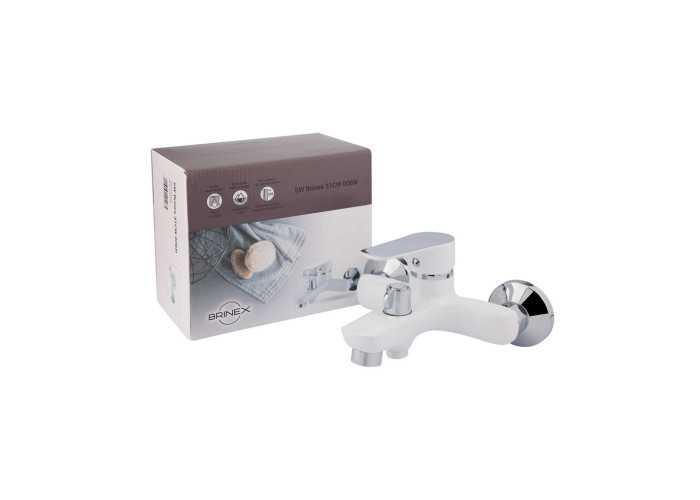 Змішувач для ванни Brinex 31CW 006N з фіксованим виливом виготовлений із металу з рівномірним покриттям білого кольору. Управління потоком здійснюється зручним важелем з маркуванням холодної і гарячої води, а перемикання на душовий режим - поворотним дивертором. Декоративні розетки допоможуть приховати вади монтажу.