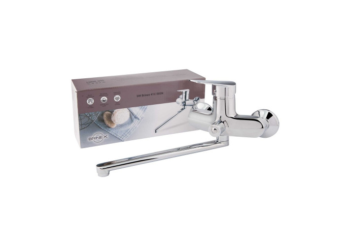 Змішувач для ванни Brinex 41C 005N з поворотним виливом виготовлений із металу з рівномірним хромованим покриттям. Управління потоком здійснюється зручним важелем з маркуванням холодної і гарячої води, а перемикання на душовий режим - поворотним дивертором. Декоративні розетки допоможуть приховати вади монтажу.