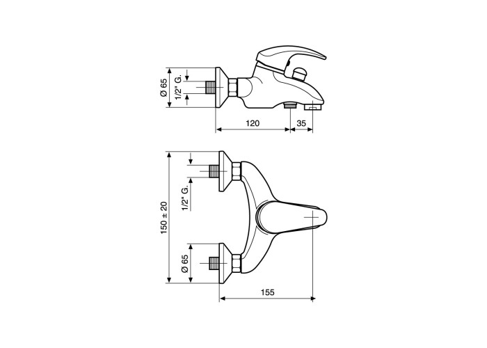 Представлена тут модель настінного, одноважільного змішувача для ванни SC7001RB серії Luxor від Emmevi, виготовлена з високоякісної латуні з покриттям кольору матового хрому, обладнується стаціонарним виливом із виносом 16 см, верхнім перемикачем ванна/душ, нижнім відводом для під’єднання душового шланга під діаметр 1/2″, і встановлюється на два отвори за допомогою ексцентрикового з’єднання під діаметр 1/2″.