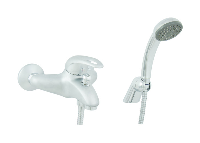 Змішувач комплектується однорежимною ручною лійкою зі шлангом завдовжки 150 см, і настінним тримачем для лійки.