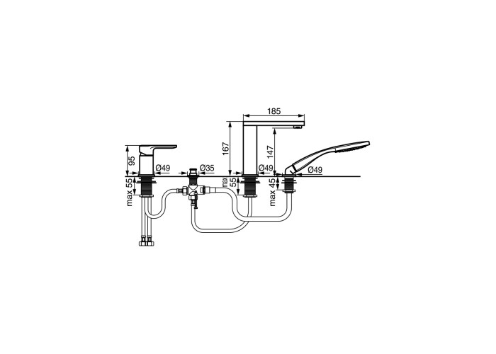 Представлена тут модель вмонтовуваного на борт ванни змішувача CR77120 серії Nefer від Emmevi, виготовлена з високоякісної латуні з покриттям кольору хрому, оснащується стаціонарним виливом з виносом 18.5 см і перемикачем ванна/душ. Змішувач комплектується однорежимною ручної лійкою зі шлангом довжиною 150 см і настільним тримачем для лійки.